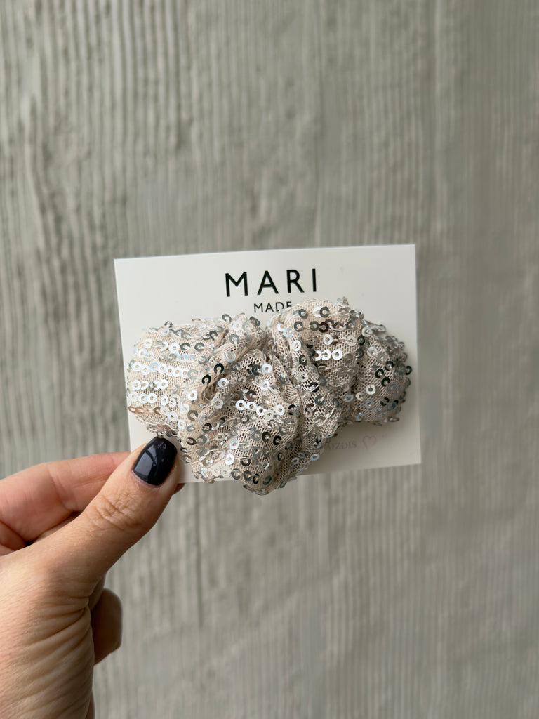 Silver GLAM nepriekaištingo žėrėjimo plaukų aksesuaras - Tavo šventiniam įvaizdžiui. Spindėk ir būk išskirtinė su šiuo rankų darbo žėrinčiu segtuku, pagamintu iš ypatingo žvynelių audinio, kuris sukuria šerkšno žėrėjimą.