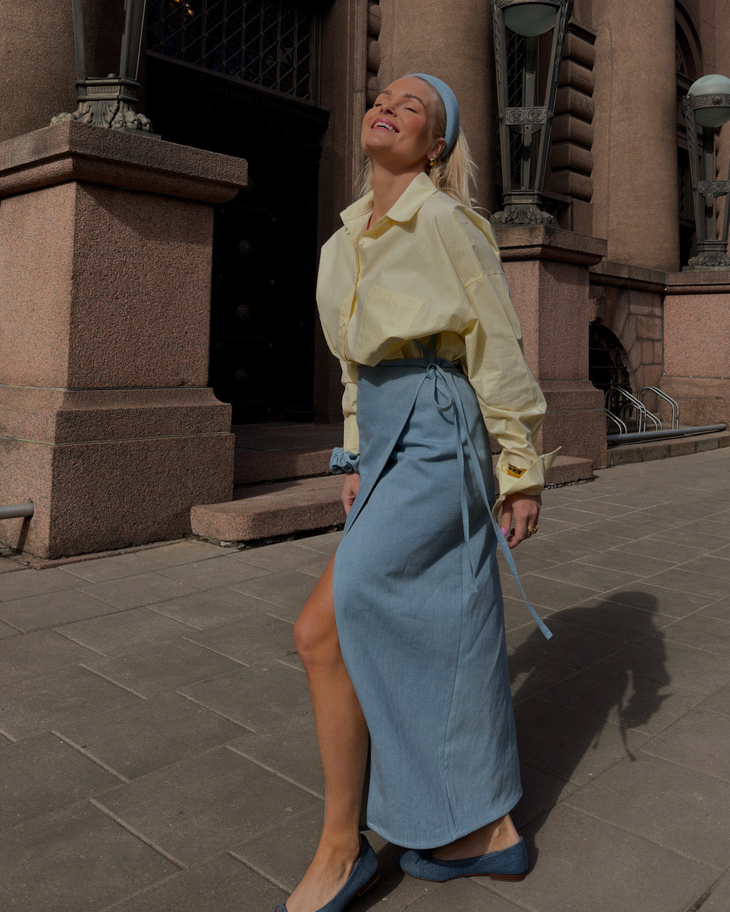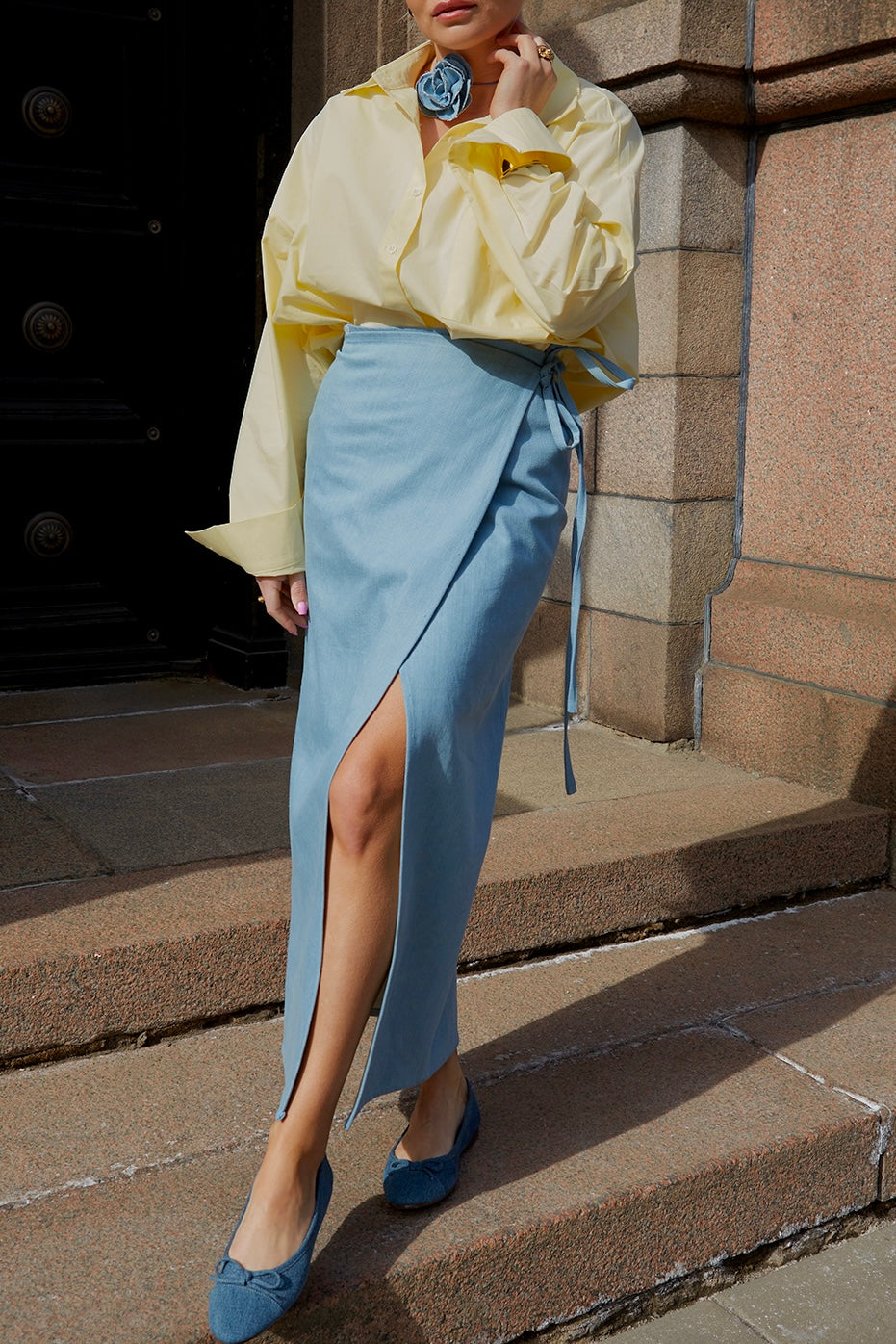 SKY DENIM susiaučiamas ilgas sijonas