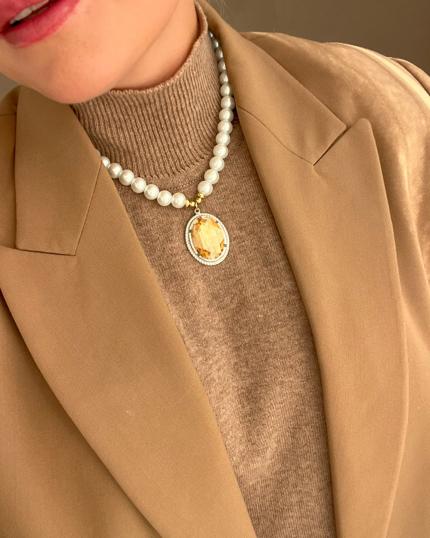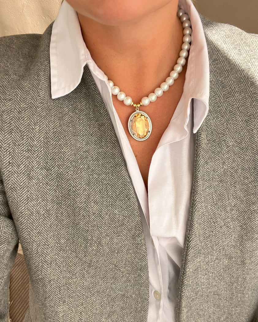 Prabangus perlų kaklo aksesuaras su kristalu Eleonora