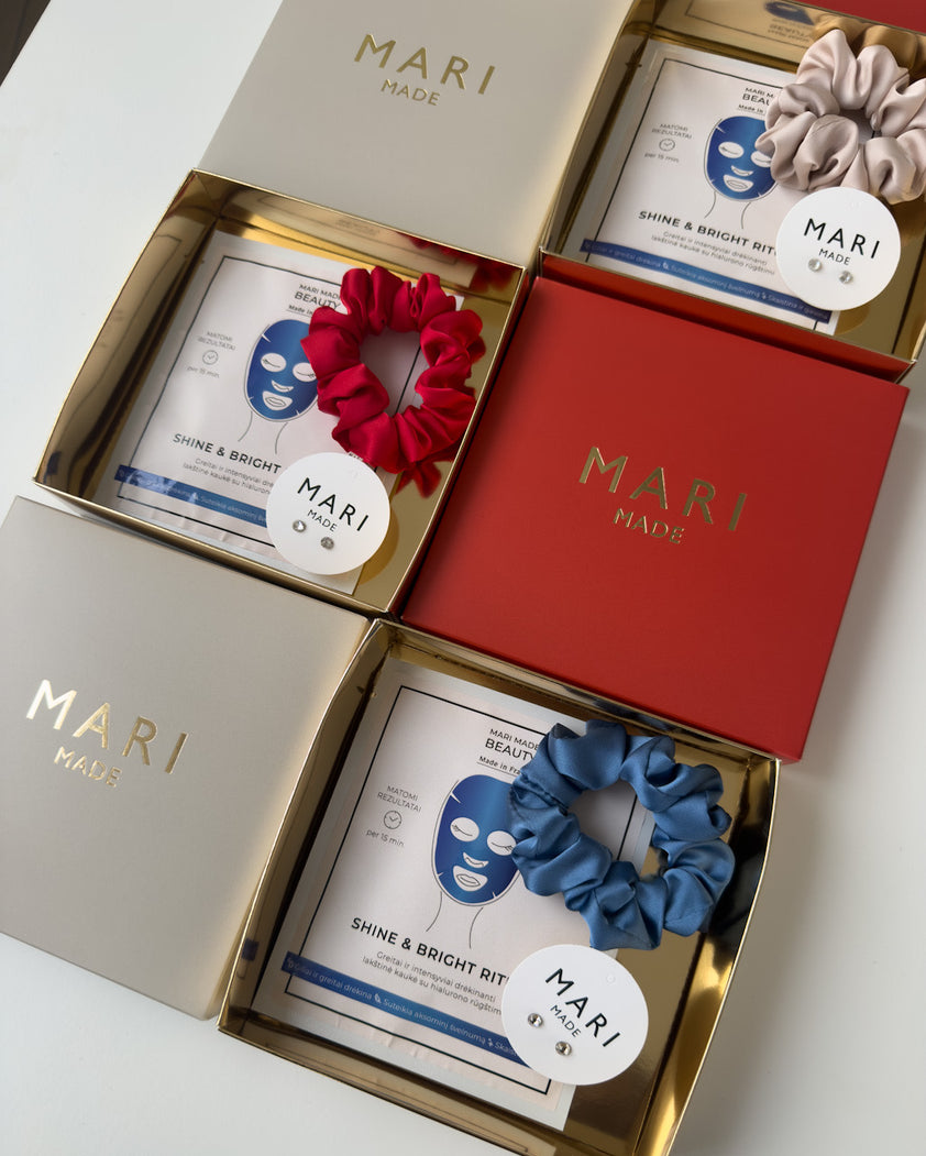 Visus produktus supakuojame į prabangią MARI MADE dėžutę, kuri pradžiugins kiekvieną moterį: vos tik pravėrusi dėžutę, šypsena nusidriekia iki ausų.
