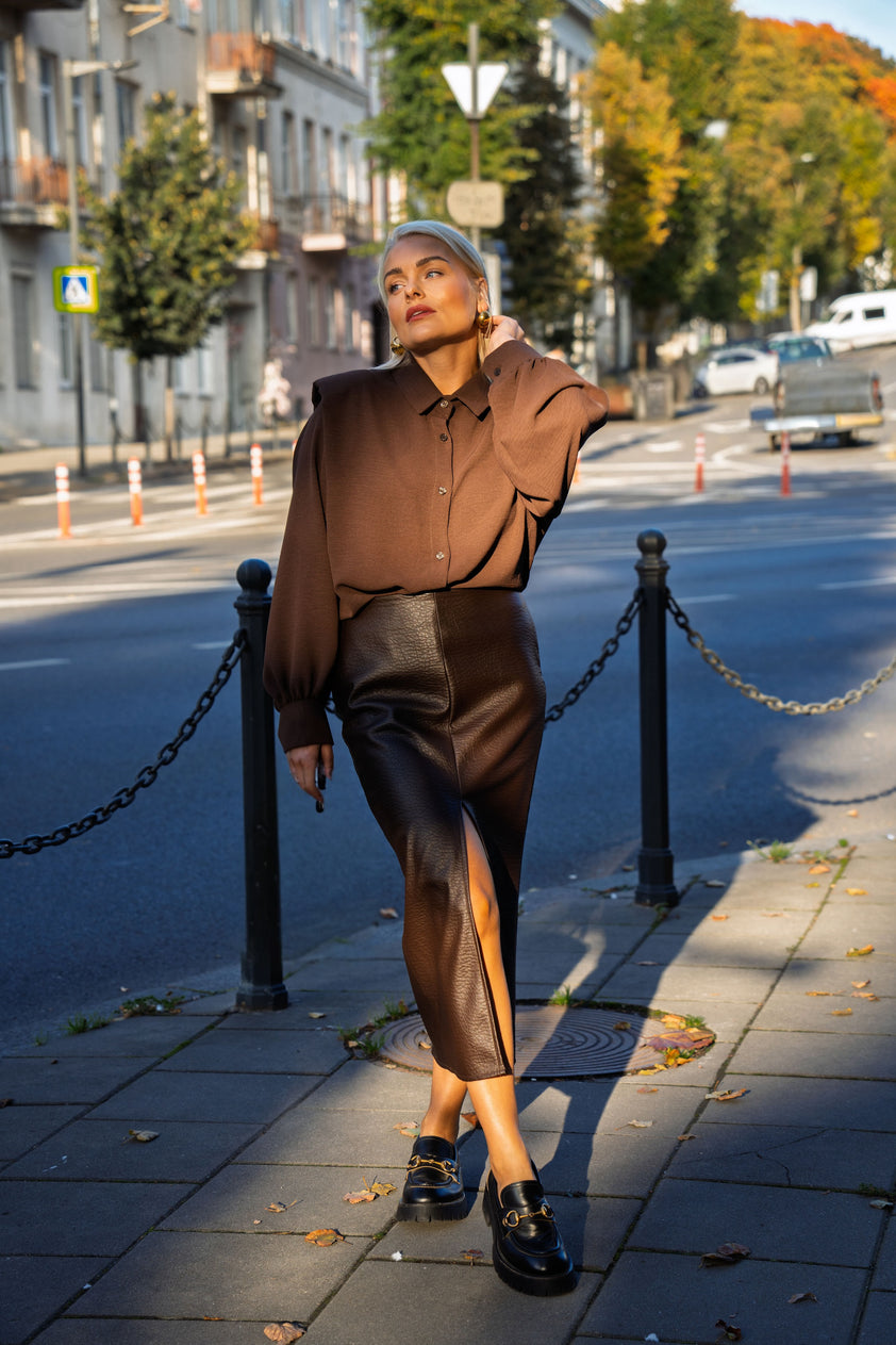 Pagaminta rankomis iš eko odos audinio. Sijonas su užtrauktuku juosmens šone.