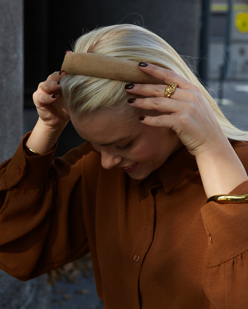 Rankų darbo išskirtinio audinio lankelis pasižymi elegancija, stiliumi ir praktiškumu. Šis aksesuaras ne tik papuoš, bet ir tvirtai laikys plaukus, nespaudžiant galvos, todėl su juo galėsite išbūti net visą dieną.